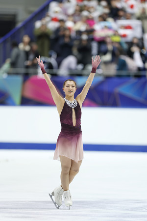 フィギュアスケートのグランプリ(GP)シリーズ第4戦、NHK杯。女子はショートプログラム首位の坂本花織がフリーも1位となり2連覇。GPファイナル進出が決まった=8日、大阪・東和薬品ラクタブドーム 【時事通信社】