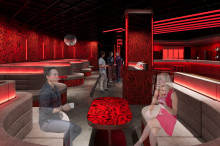 店内は赤色を基調にネオンアートを散りばめるほか、椅子にはウッド素材を取り入れる。DJがK-POPをはじめとするさまざまなジャンルの音楽を流す。映像演出も用意。ドリンクは韓国で親しまれるソジュ(焼酎)などを提供する。