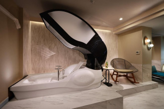 大阪・難波のホテル「道頓堀クリスタルホテル3」(大阪市中央区島之内2)が12月9日、「ミライ人間洗濯機」体験サービスを始めた。
