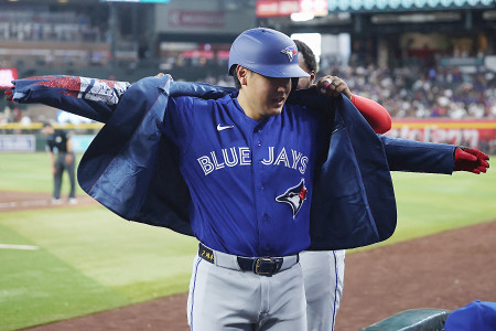 ジャケットを着せられる岡本 大リーグ