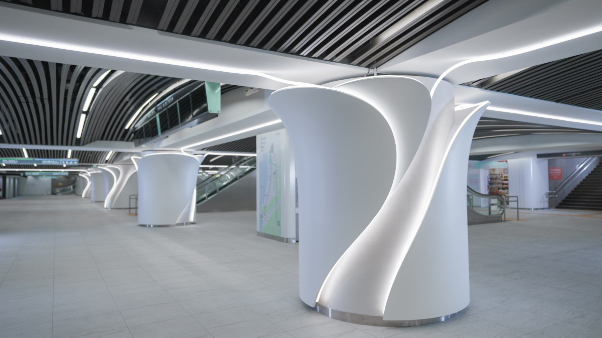 南海難波駅で9月27日、リニューアル工事完了に伴い、2階中央改札口改札内コンコースの供用が始まった。曲線的なデザインの柱