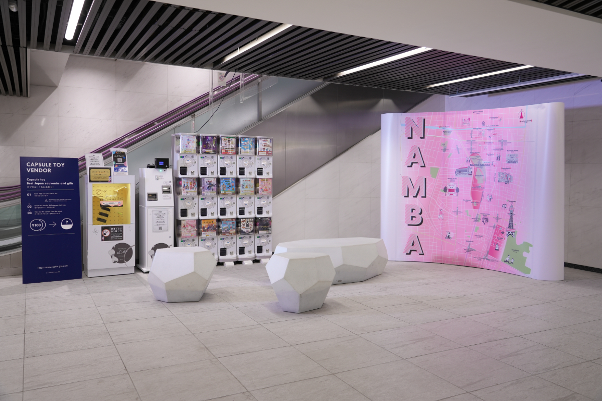 南海難波駅で9月27日、リニューアル工事完了に伴い、2階中央改札口改札内コンコースの供用が始まった。大型マップと椅子を設置