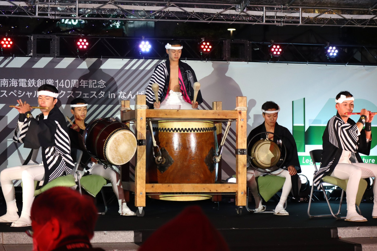 南海電鉄140周年記念イベント「スペシャルサンクスフェスタ in なんば広場」が11月2日、なんば広場で行われた。太鼓や笛などを演奏する「岸和田だんじり祭」のだんじり囃子