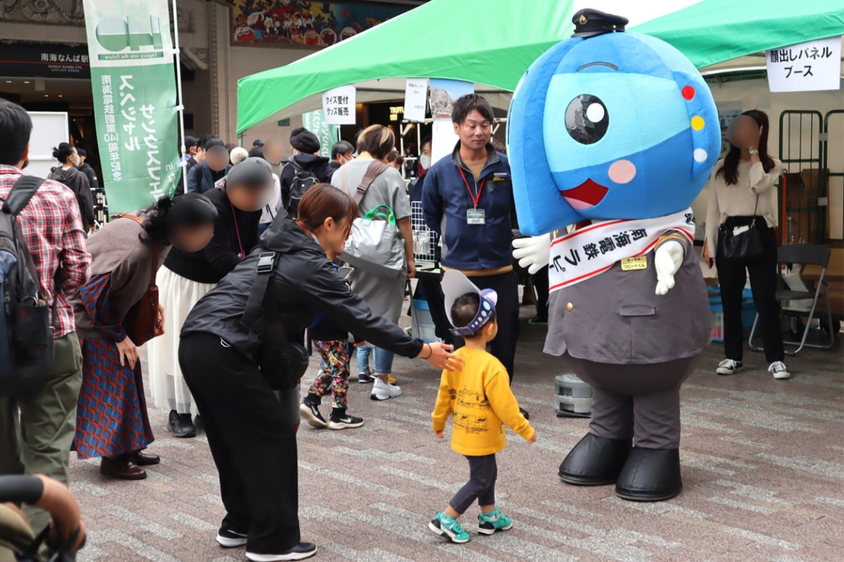 南海電鉄140周年記念イベント「スペシャルサンクスフェスタ in なんば広場」が11月2日、なんば広場で行われた。「ラピートくん」と記念撮影する子ども