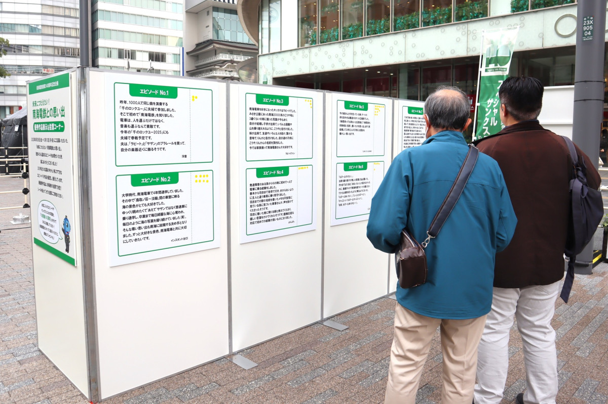 南海電鉄140周年記念イベント「スペシャルサンクスフェスタ in なんば広場」が11月2日、なんば広場で行われた。来場者投票を行う「未来につたえたい!南海電鉄との思い出」コーナー