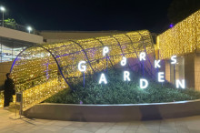 イルミネーションイベント「なんば光旅」が11月7日、南海なんば駅周辺で始まった。なんばパークス2階の「緑のエントランスシンボル」