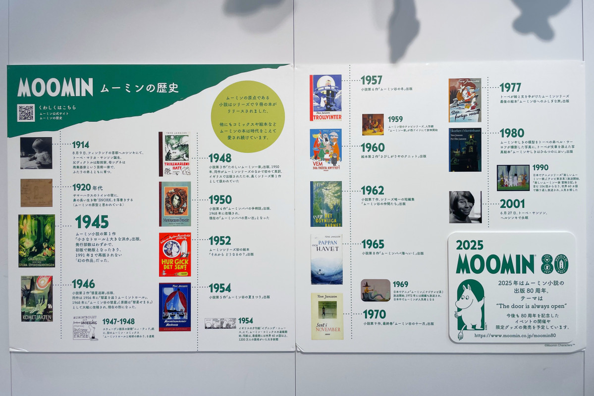 「ムーミンマーケット2025」が11月26日、高島屋大阪店7階で始まった。ムーミンの歴史をまとめた年表