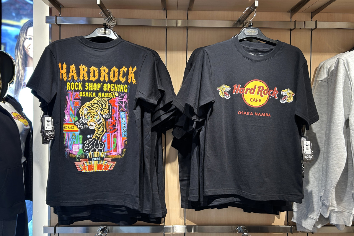 「ハードロックカフェ 大阪なんば ロックショップ」が12月3日、戎橋筋商店街にオープンした。大阪らしいデザインを施したオープン記念のTシャツ