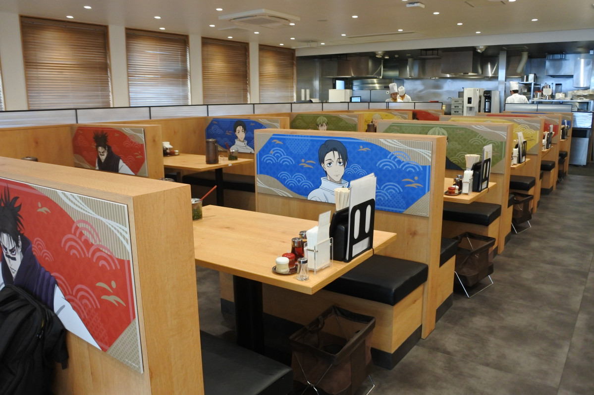 ラーメン店「どうとんぼり神座 御堂筋店」が現在、テレビアニメ「呪術廻戦」とコラボレーションしている。「呪術廻戦」のキャラクターで装飾された店内