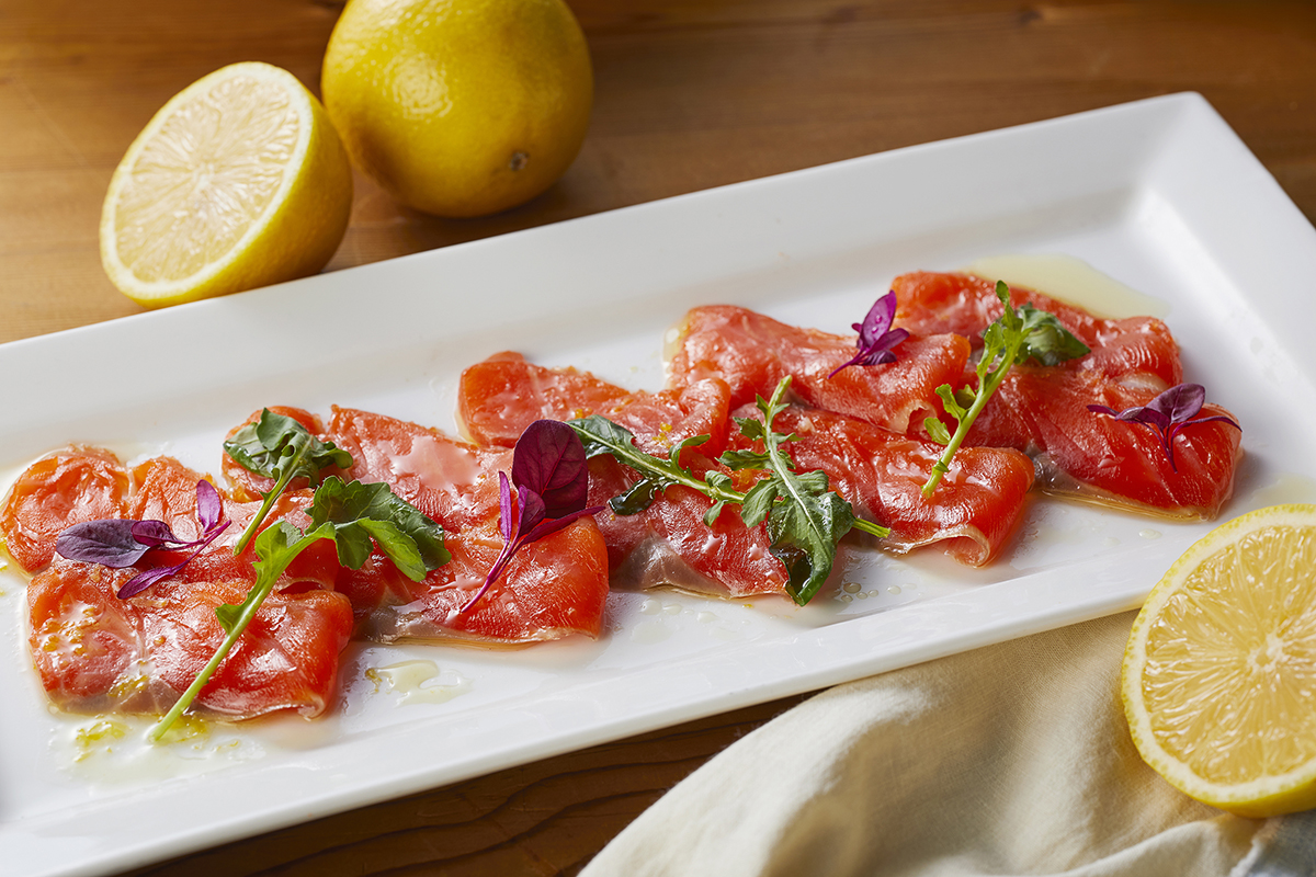 「福井県 敦賀・若狭フェア」が3月1日、スイスホテル南海大阪内の3店で始まった。「テーブル36」のランチビュッフェで並べる「ふくいサーモンレモンのマリネ」