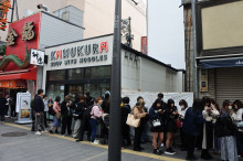 祭りの日には公園前の飲食店スタッフも浴衣姿で接客