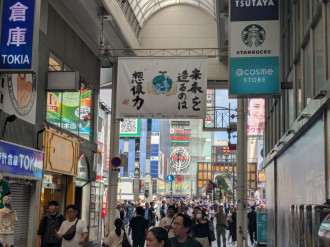 戎橋筋商店街に9月29日から、高校生がデザインしたバナーが掲出されている。
