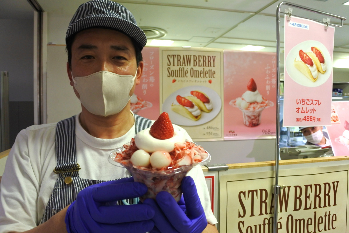 フローズンイチゴを削ったスイーツを提供する「うらかわ菅農園」
