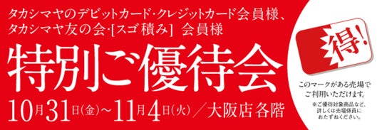 10月31日(金)から11月4日(火)までの5日間、大阪高島屋にて「特別ご優待会」が開催されます。