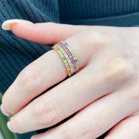 1本でも存在感があり、2本3本と重ねるとパヴェのような華やかさに。