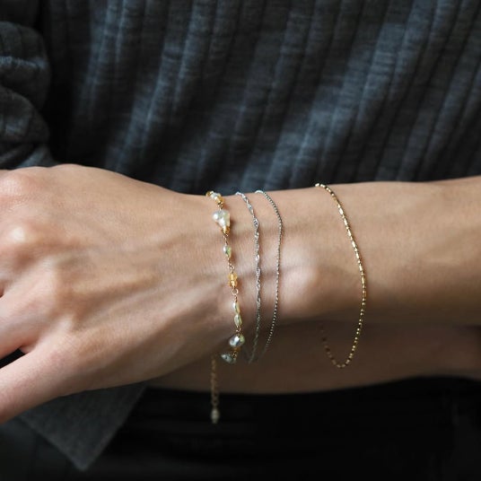 ブレスレット。異なる質感の重なりが手もとに光のリズムを