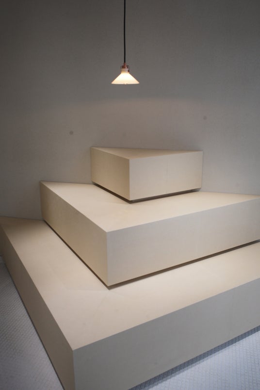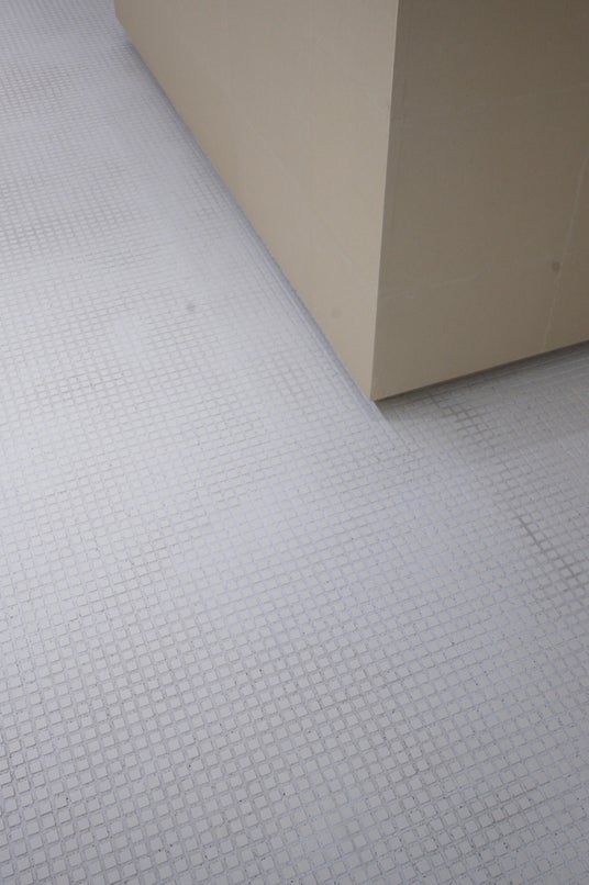 タイル仕上げの床面。細かなグリッドが光を反射し、繊細な陰影をつくる。